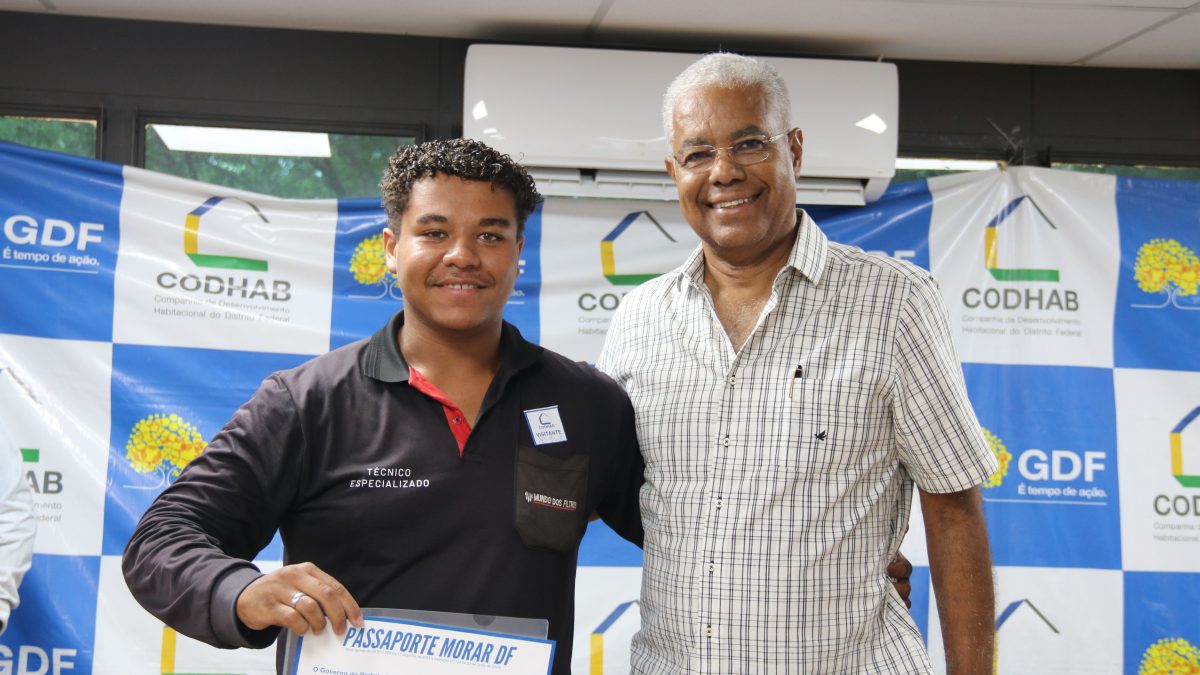 Já o desenvolvedor de Tecnologia da Informação, Yuri Ruan, ressaltou o impacto direto que o Cheque Moradia deu na oportunidade de comprar o primeiro imóvel. “Acreditem no programa de moradia da Codhab. Estou aqui com o Cheque Moradia em mãos para dar entrada na minha primeira casa própria”, comemorou. A diretoria da Codhab conduziu a entrega simbólica do Cheque Moradia às famílias beneficiárias.