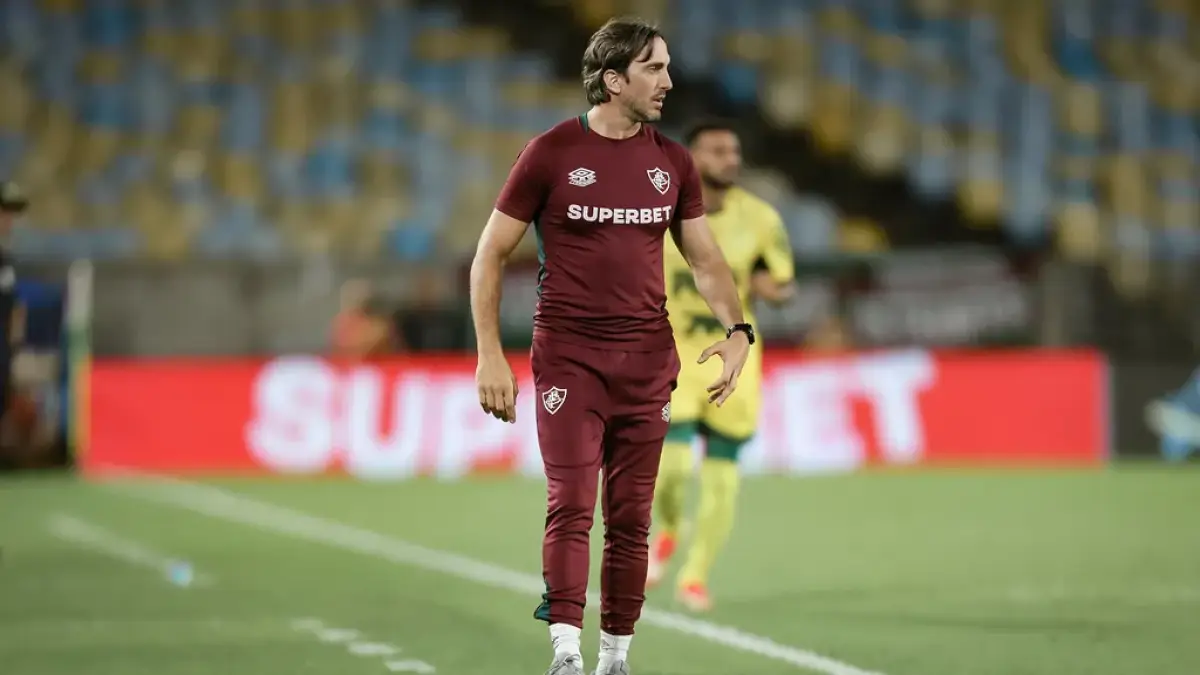 Com 1×0, o Fluminense continua ocupando o campo ofensivo e é visível a orientação para marcação alta, mas precisa corrigir o posicionamento.