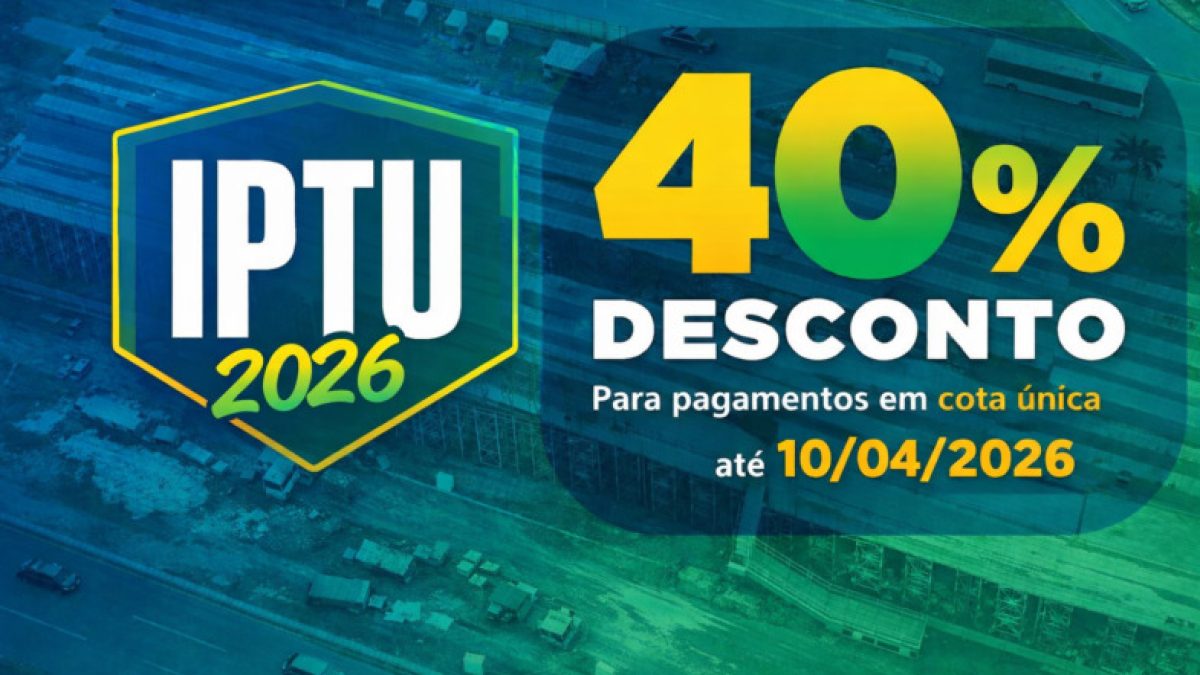 Conforme o calendário fiscal estabelecido por decreto municipal, o IPTU 2026 poderá ser pago em parcela única com os seguintes descontos: