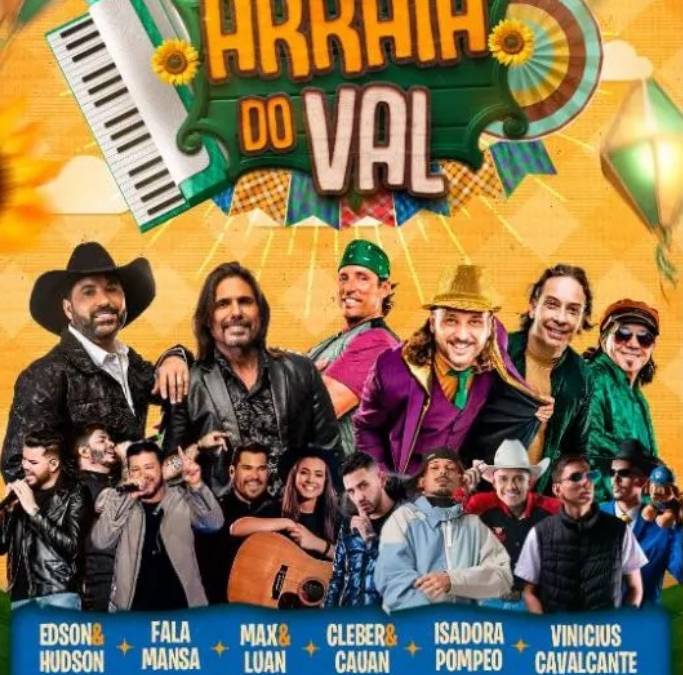 Com estrutura preparada para receber milhares de pessoas, o Arraiá do Val contará com apresentações de artistas nacionais como Edson & Hudson, Falamansa, Cleber & Cauan, Max & Luan e Isadora Pompeo. Além disso, o evento valoriza os talentos locais, com shows de Vinícius Cavalcante, Danlive, Wam Baster, Carlos Henrique e Décio Gomes.
